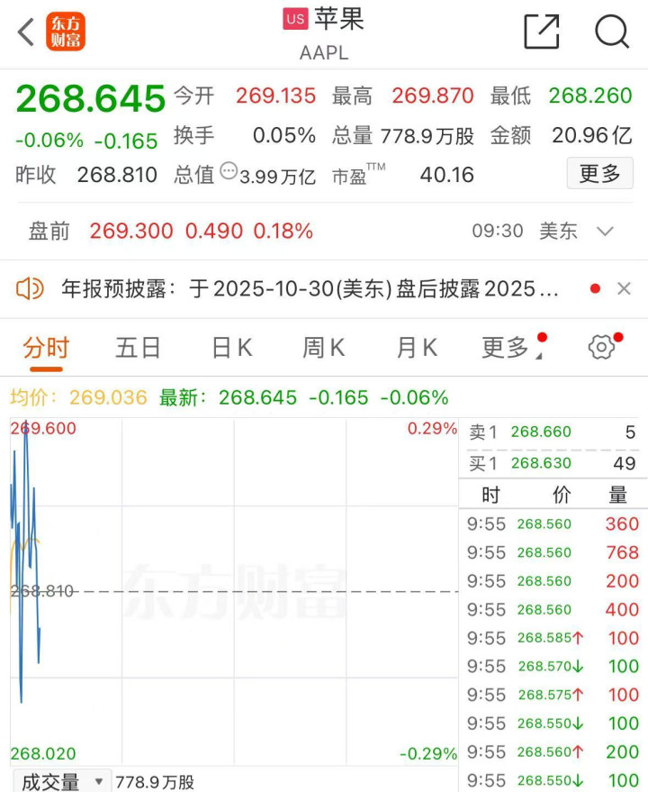 苹果股价微涨0.2%,总市值一度首次升破4万亿美元,美股4万亿美元市值上市公司达3家。不过,苹果股价随后就跌落,截至发稿,苹果跌0.06%。