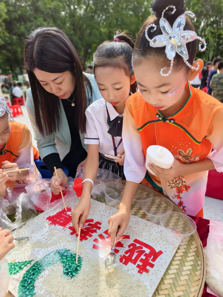 “归仓!”上午一声号令,师生和嘉宾共同揭开“五谷丰登”仓门,金黄的稻穗、玉米哗哗入仓,现场瞬间沸腾。这场传统农耕祈福,不仅寄寓着丰收的美好愿望,更点燃了全场热情。